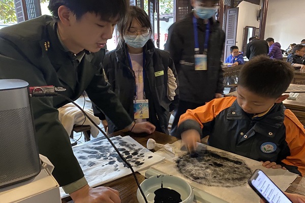 12月11日下午,电气学院阳光社的志愿者们来到渡江战役纪念馆,协助纪念馆的工作人员一同开展“重庆舰牌闪光华,一起动手拓印它”活动。