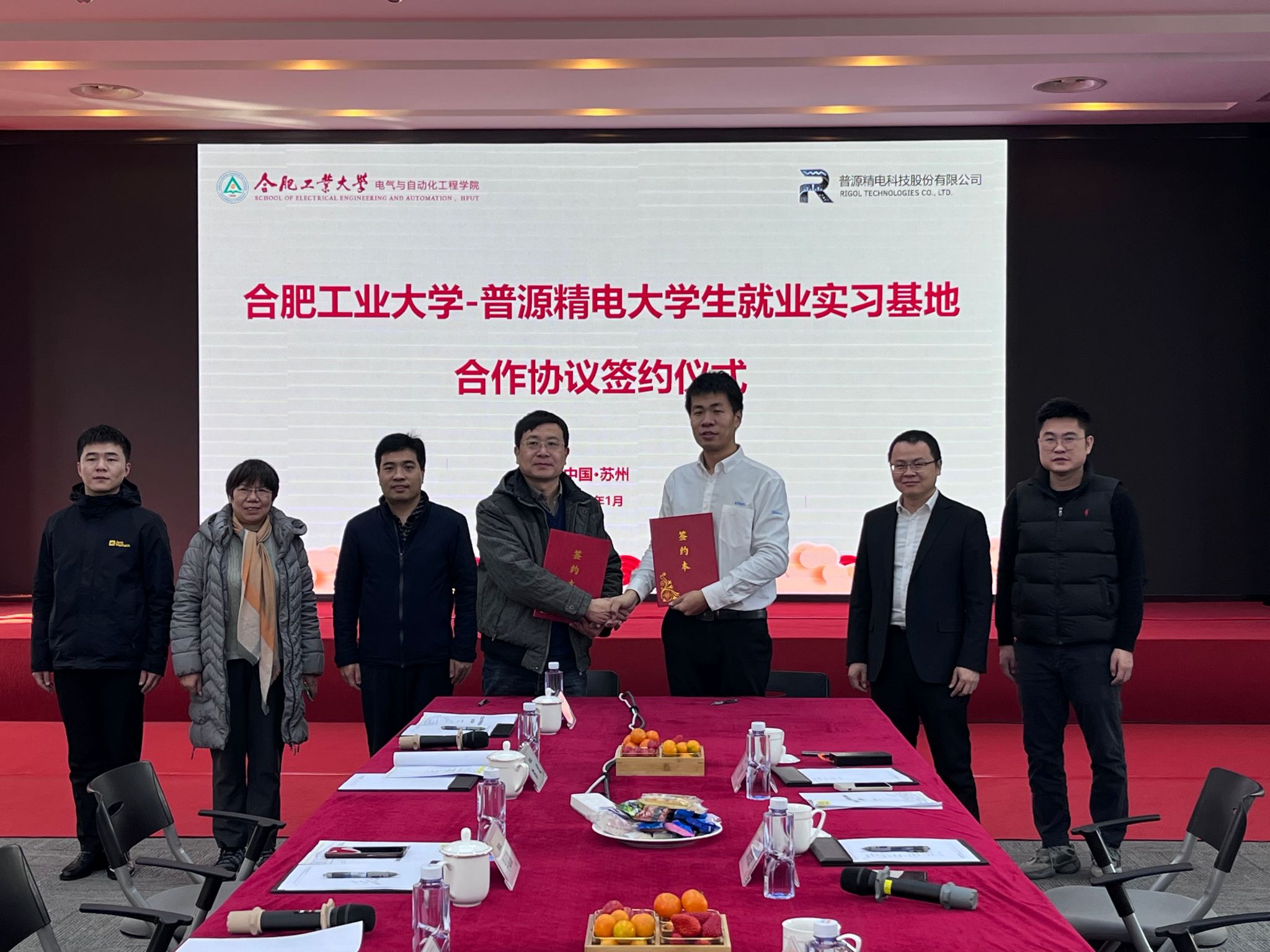 下午,学院教师前往苏州汇川技术有限公司洽谈交流,苏州汇川技术有限公司人力资源部人才发展总监罗永辉、校园招聘&校企合作经理徐明达、校友代表叶万家与学院教师交流座谈。罗永辉对学院教师来访表示热烈欢迎,他介绍了企业发展现状、成长历程、国产直播、人才发展、业务领域以及社会责任等情况,指出工大学子工程基础厚、工作作风实、踏实肯干、务实钻研,在公司发展中贡献了突出力量,为企业高质量发展提供了新鲜活力,希望与学校在人才招聘、学生就业实习、社会实践等方面拓展合作方式、创新合作机制,让校企合作进一步走深走实。李丽鹏对苏州汇川技术有限公司给予学院的关心和支持表示衷心感谢。他介绍了近年来学校的发展概况和学院的专业设置、师资力量、人才培养等情况,希望校企双方进一步汇聚各方优势资源,在人才培养、科研合作、就业实习等领域深入开展合作,打造校企协同育人新模式,形成更深层次、更广范围、更高水平的务实合作,进一步促进毕业生高质量就业。随后,李丽鹏与徐明达代表双方签订共建合肥工业大学大学生就业实践实习基地协议,罗永辉和李丽鹏共同为大学生就业实习基地揭牌。双方就科研项目合作、人才招聘、人才培养等方面内容进行深入座谈。最后,学院教师参观公司展厅,了解国产直播和技术成果。